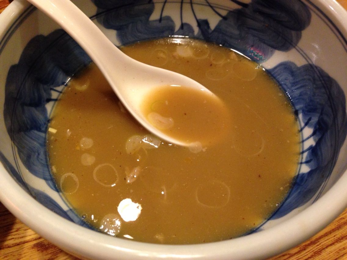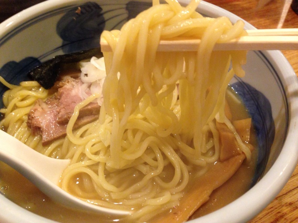 豚のゲンコツ・鶏ガラ・こんぶ・煮干・たくさんの野菜・かつおぶし、という構成みたいだけど、感覚的には魚介80%の、動物と野菜で40%。