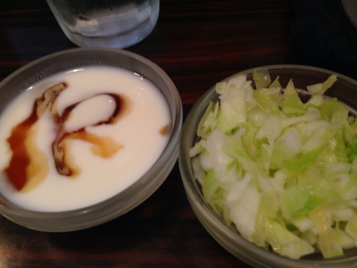 こちら、付け合わせのサラダとお口直しのヨーグルト。