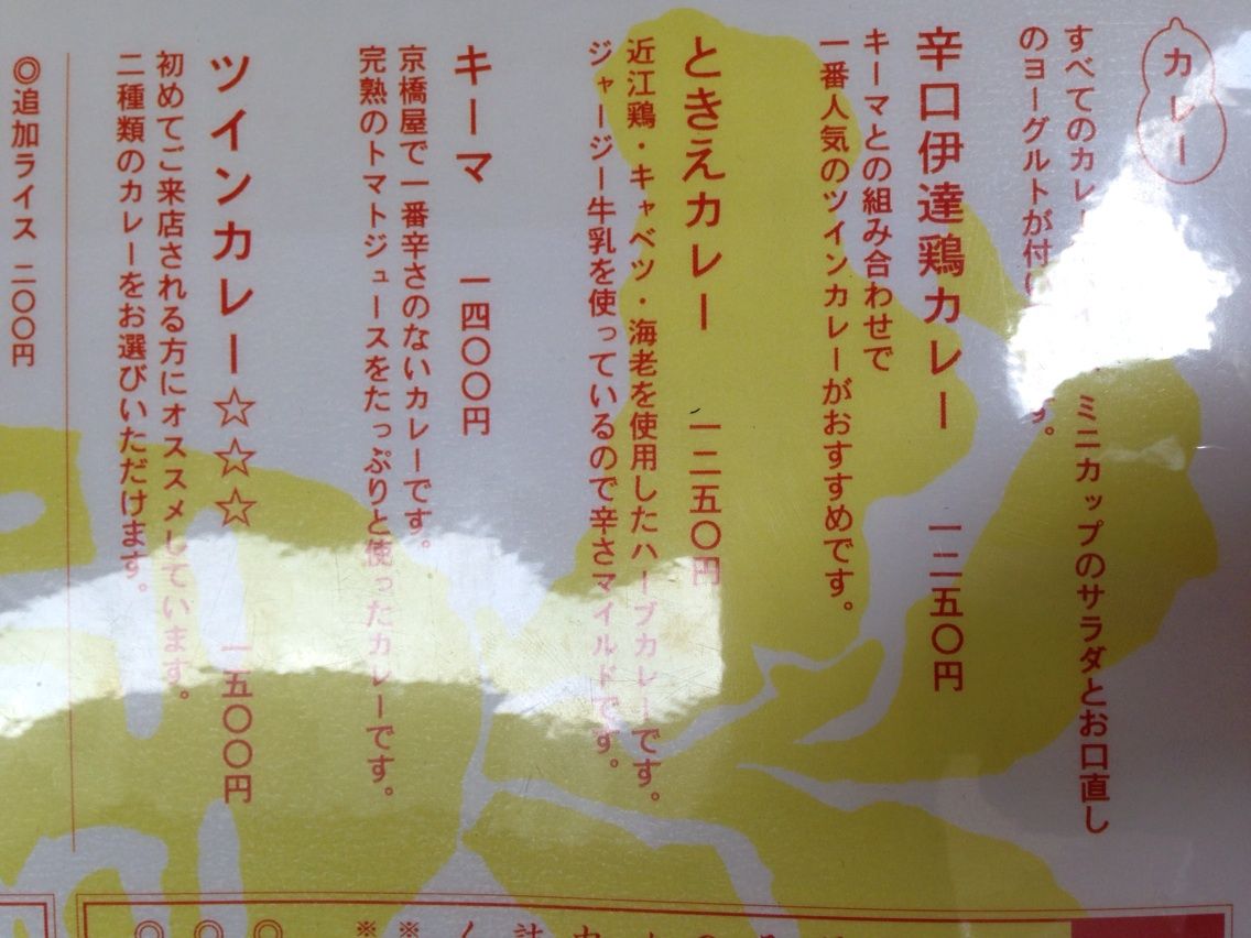 辛口伊達鶏、ときえ、キーマの3種類があって、ツインカレーならそのうち2つが楽しめるよ!