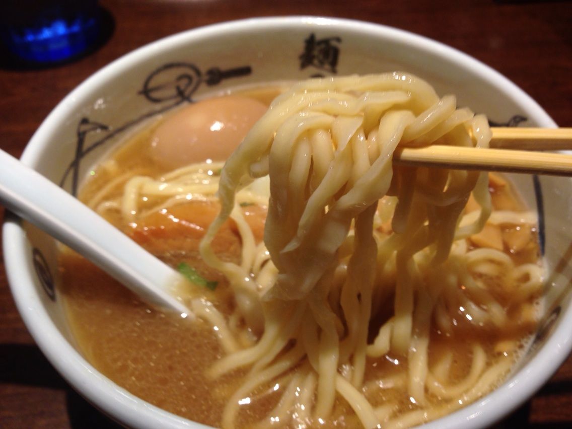 麺は中太の縮れ麺で、表面がツルツルしてるから吸いこんだときの踊り方が心地いい!