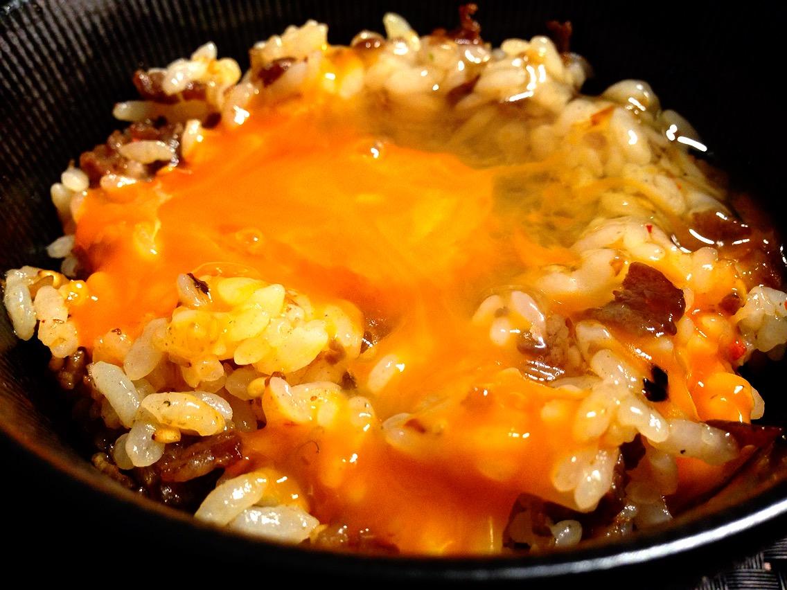 この日のこのメニューのためにわざわざ肉おねえさんが青森から取り寄せた卵は、箸でつついたくらいでは卵黄がビクともしないくらいのブリンブリンの濃厚な逸品!