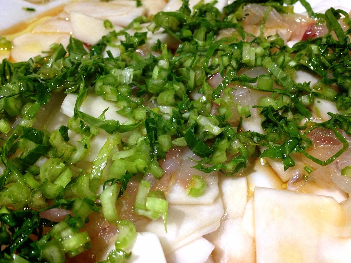 と、ここで箸休め的に肉おねえさんがまさかの鯛とカブのサラダ!