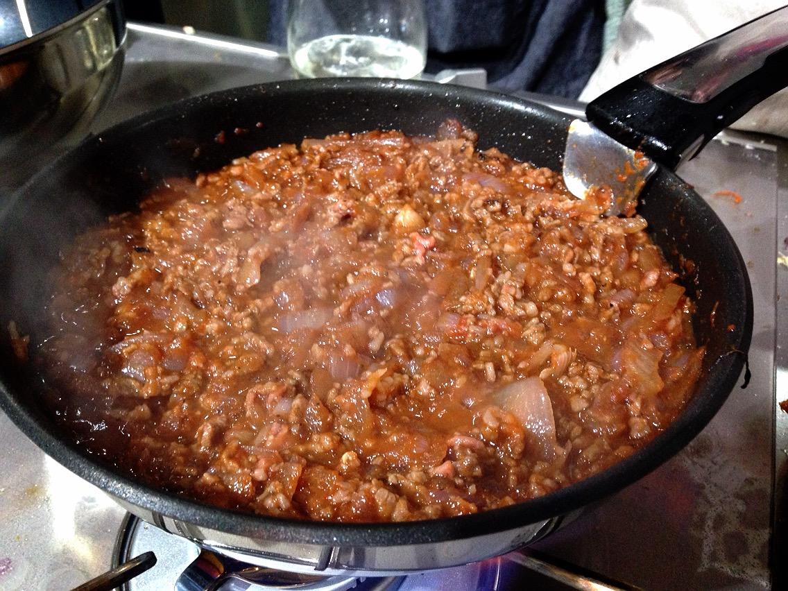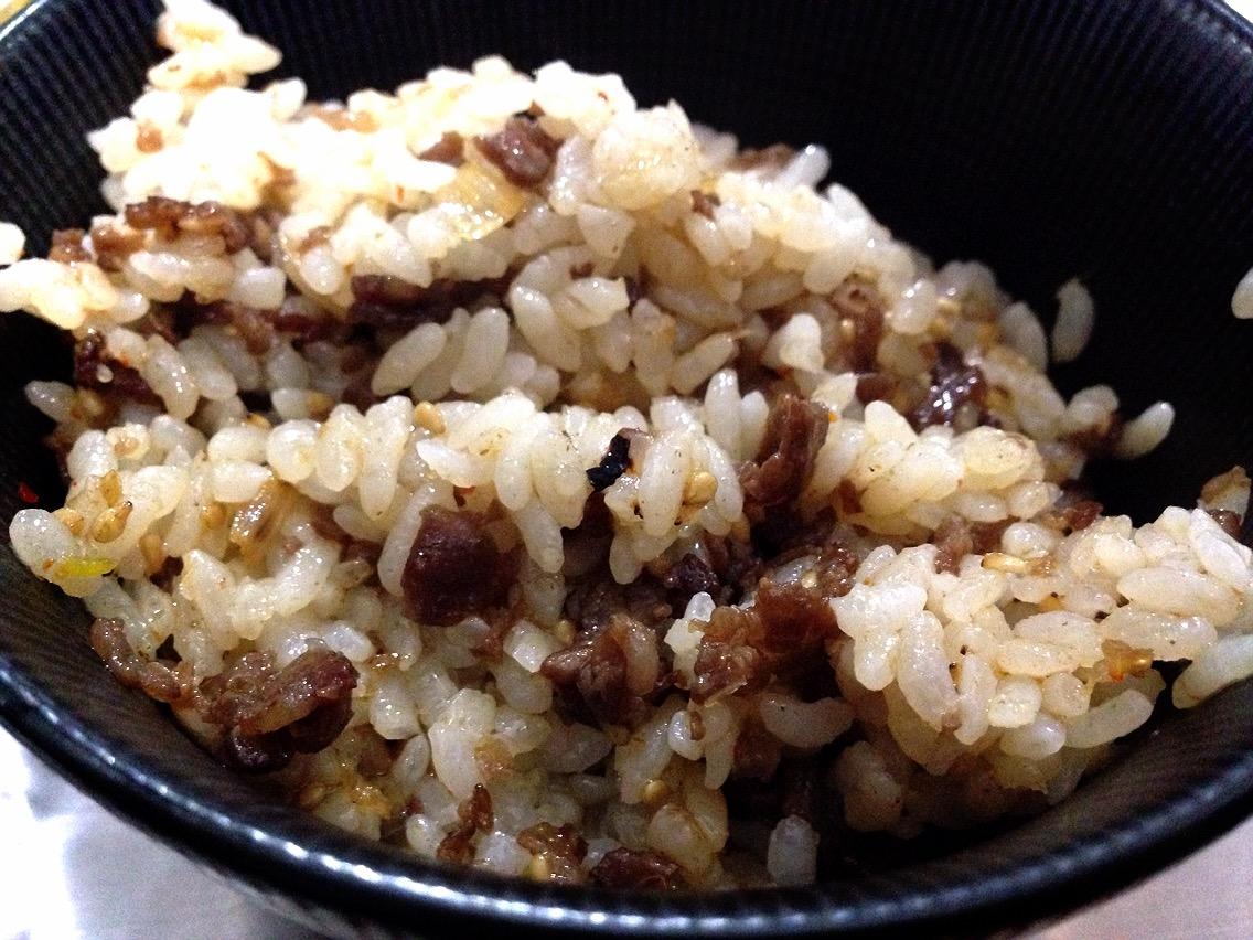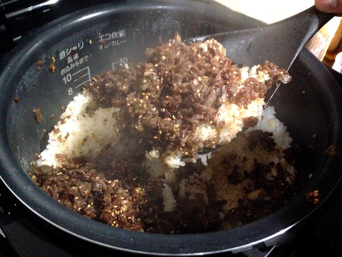 クーニーのブラアー(肉の脂)を吸いまくったタマネギを、ジャンコチュスーベーのレーター(コチュジャンベースのたれ)で味付けして…