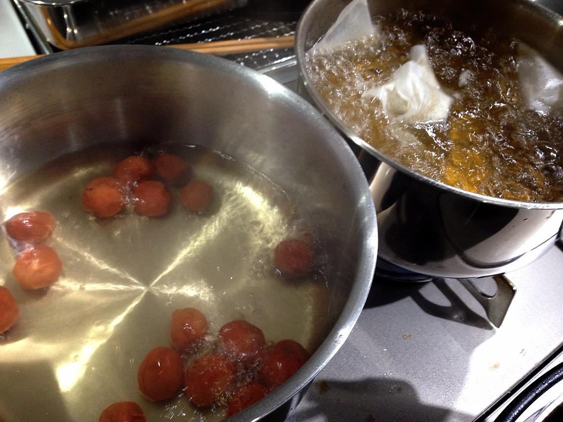 梅干しを日本酒で茹でたものと、アゴ出汁!