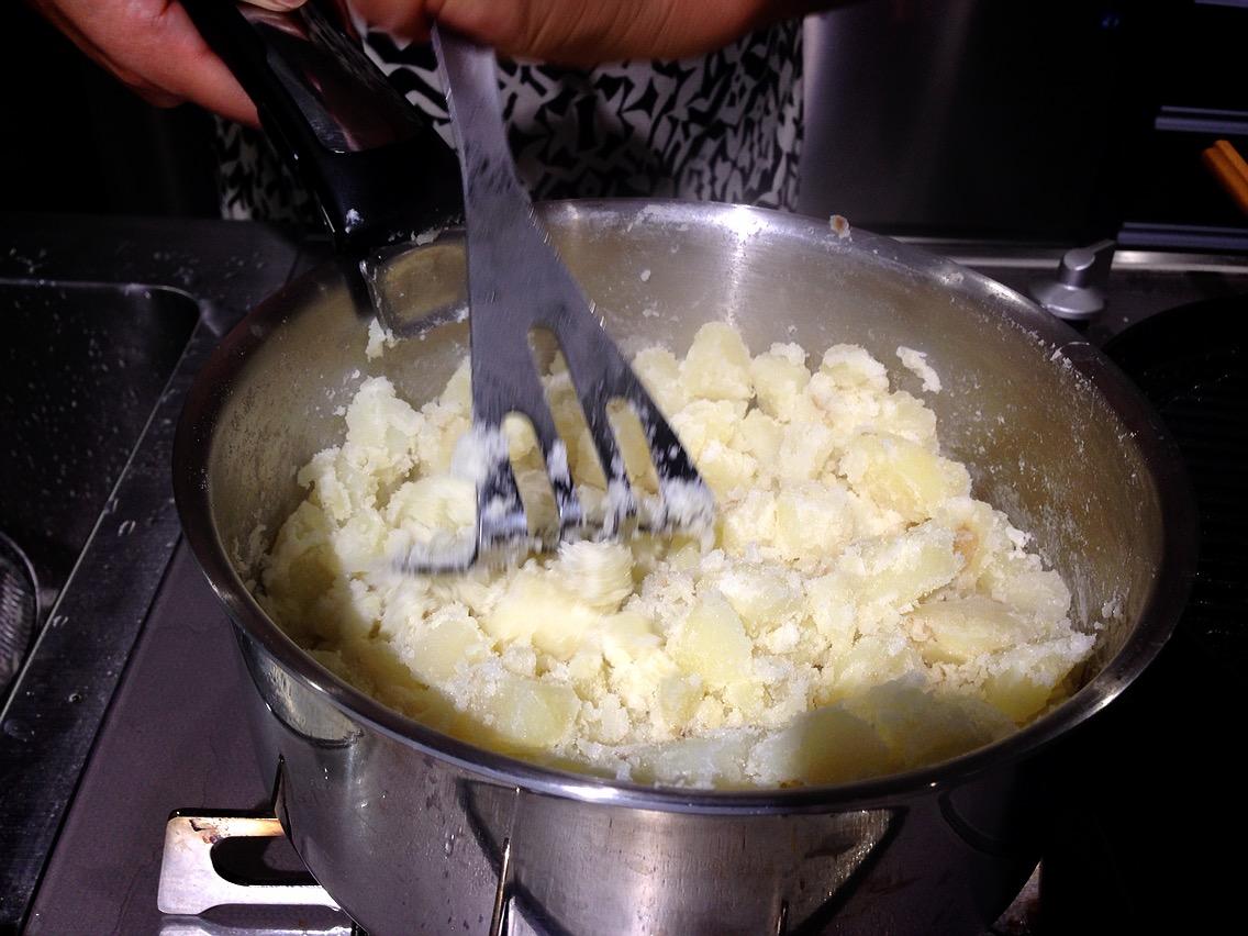 その傍で、味見多めでジャガイモを潰すマダムポテイトウ!