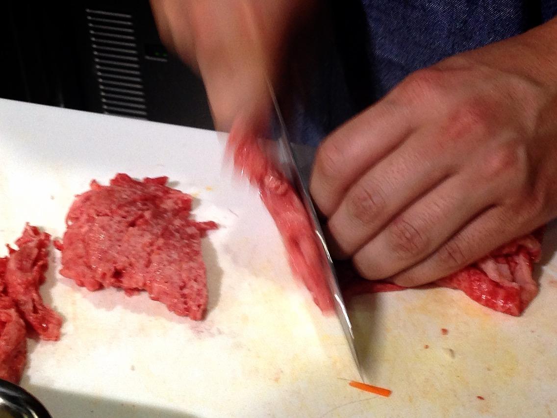 なんと48日熟成でチルドのまま0.8mmにスライスされ直送された、他では絶対に味わえない逸品!