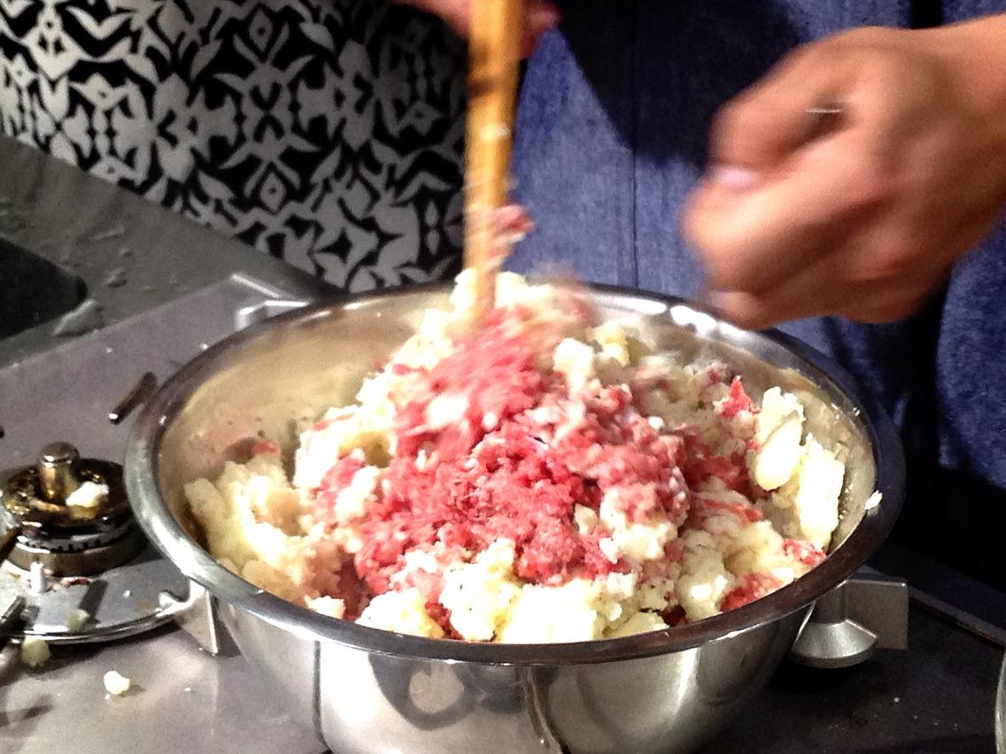 きんぴらを仕上げた肉ガールが、何やらコネコネし始めたよ!