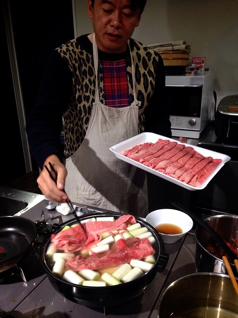 間髪入れずに、今度は肉おじさんがまたすき焼きをつくり始めたよ!