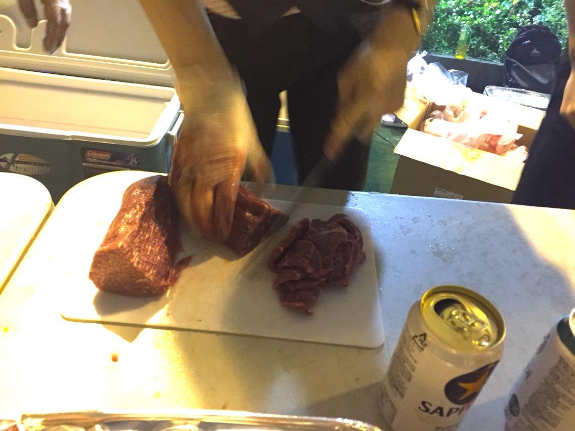 そうこうしているうちにもキッチンテーブルではどんどん肉が切られていくよ!