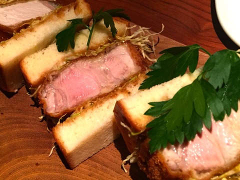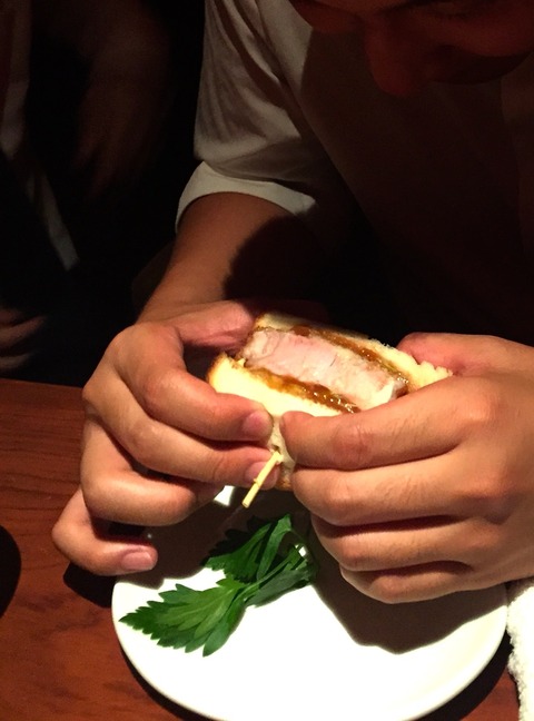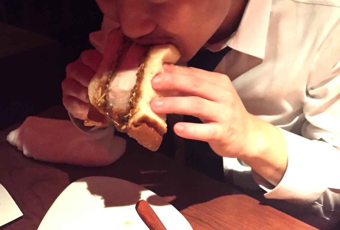 極厚の豚肉を叩きまくって柔らかくジューシーに仕上げたつもりが、それでも超極厚というほどのカツサンド!