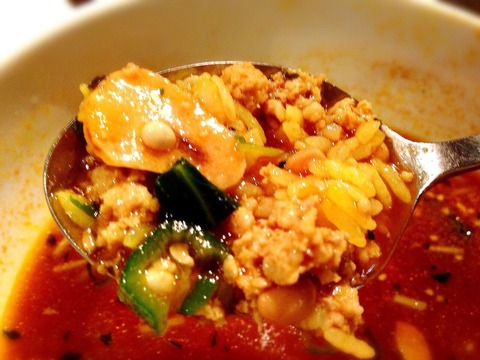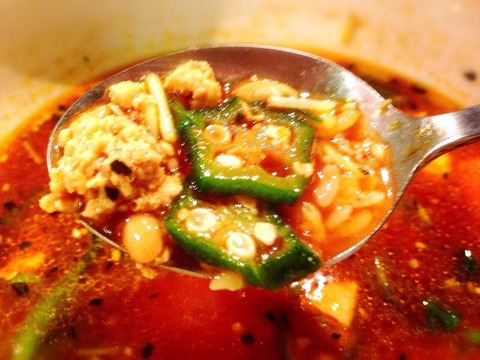てことでひき肉とオクラ納豆のトマトスープカレーをたべーる!!