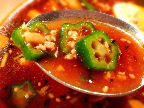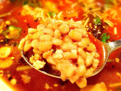 納豆とオクラのネバネバ感とシャバシャバのプースーは、意外にもガッチリマッチ!!
