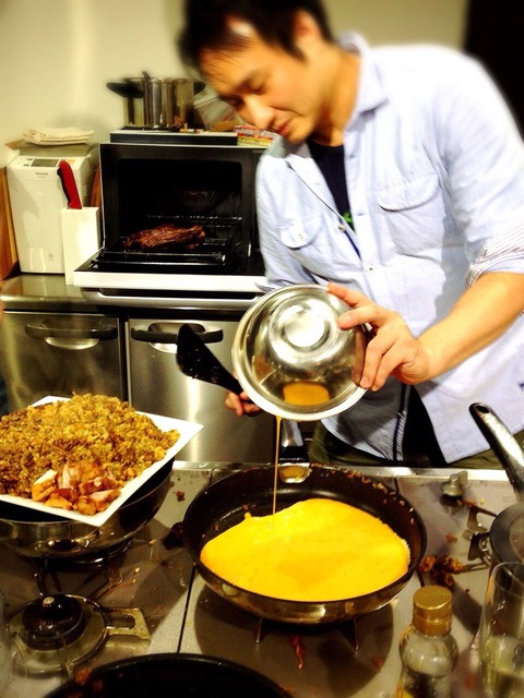 味覚おじさんは、手早く炒めてチャーハンを作るみたい!