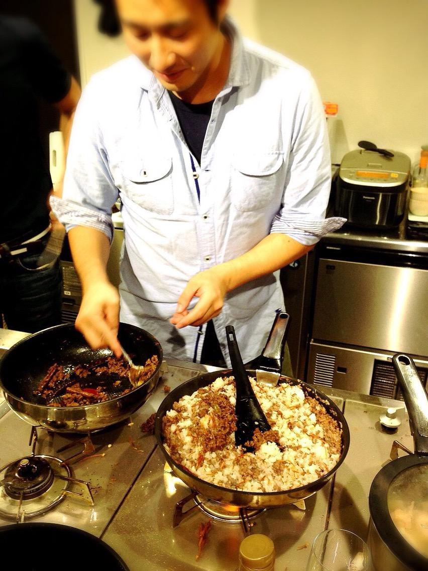 ちなみに奥では鶏を炊いていて、プースーをキーマにプラスする予定なんだけど、肉の存在感に負けまくって演出上のドライアイスくらいにしか見えない!!!