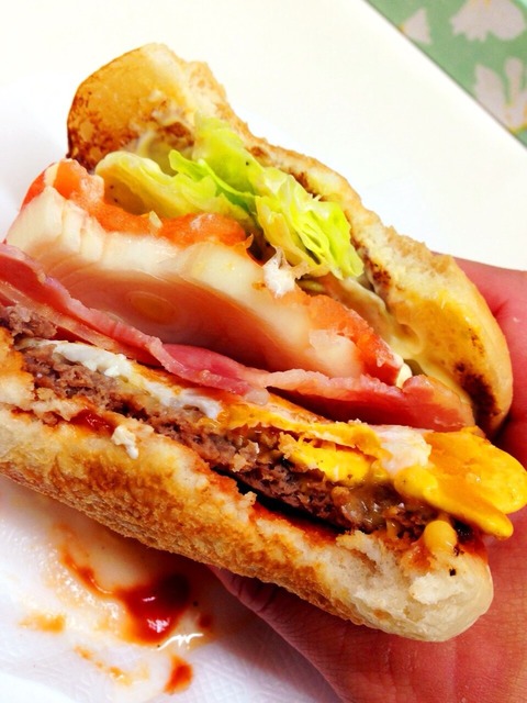 ベーコン、玉子、チーズ、それぞれの味をしっかり感じられる絶妙なバランスのバーガーだよ!