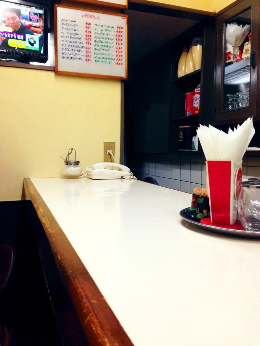店内はとてもバーガーショップとは思えない、古びたカウンター8席だけのレトロすぎる雰囲気!