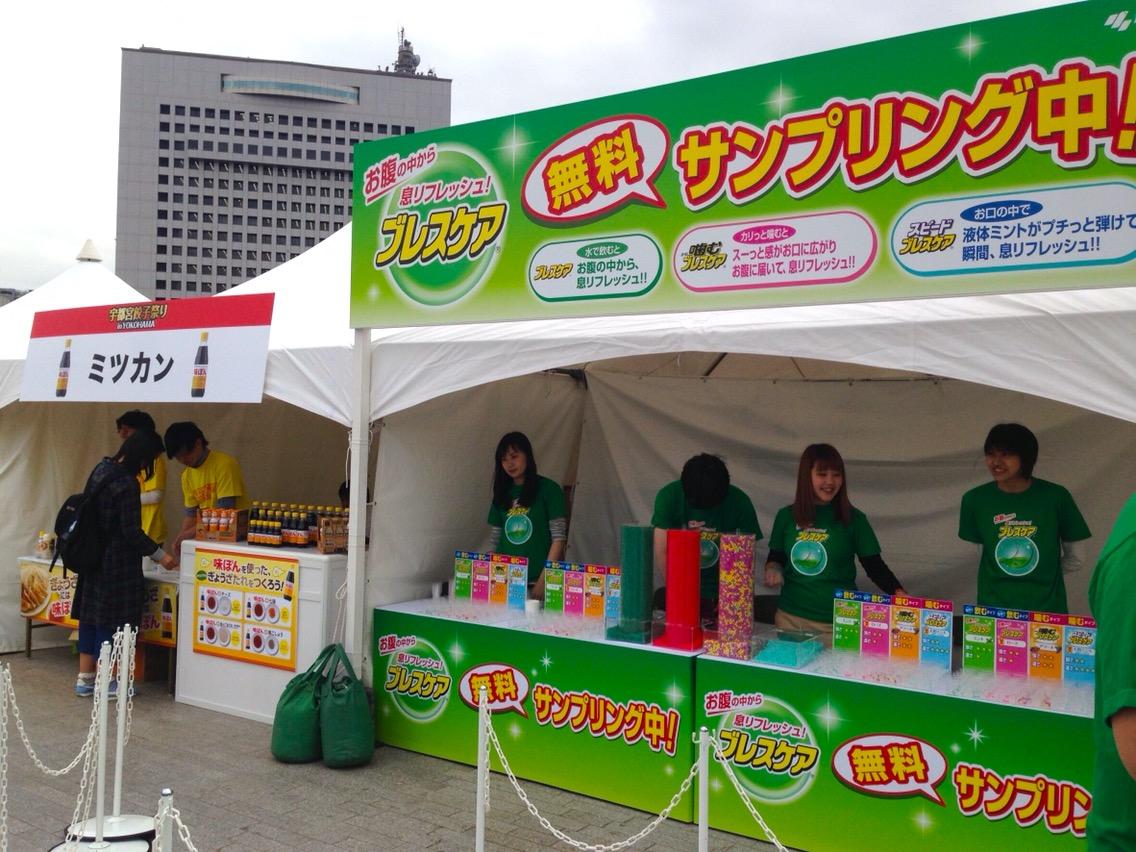 ミツカン味ぽんが餃子と味ぽんのマリアージュを提案していたり、ブレスケアのサンプリングブースがあったりするよ!