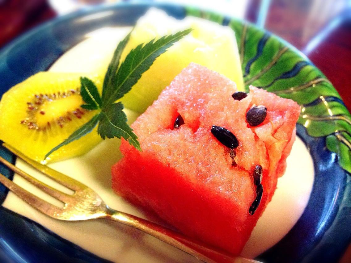 季節のフルーツで、絶品川魚フルコースはこれにて閉幕!!