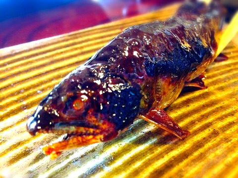 鮎にタレをかけて表面がバリつくまで焼き上げた、まさに飴!って感じの名物料理だよ!