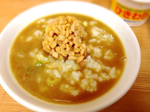 おかわり自由のライスに納豆をトッピングして雑炊化すれば、完璧な朝ごはんの完成!!!