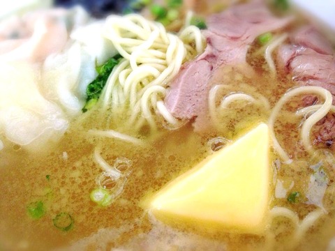 海老雲呑麺と塩バターラーメンとで迷ったら、海老雲呑麺にバター別皿トッピングだよ!