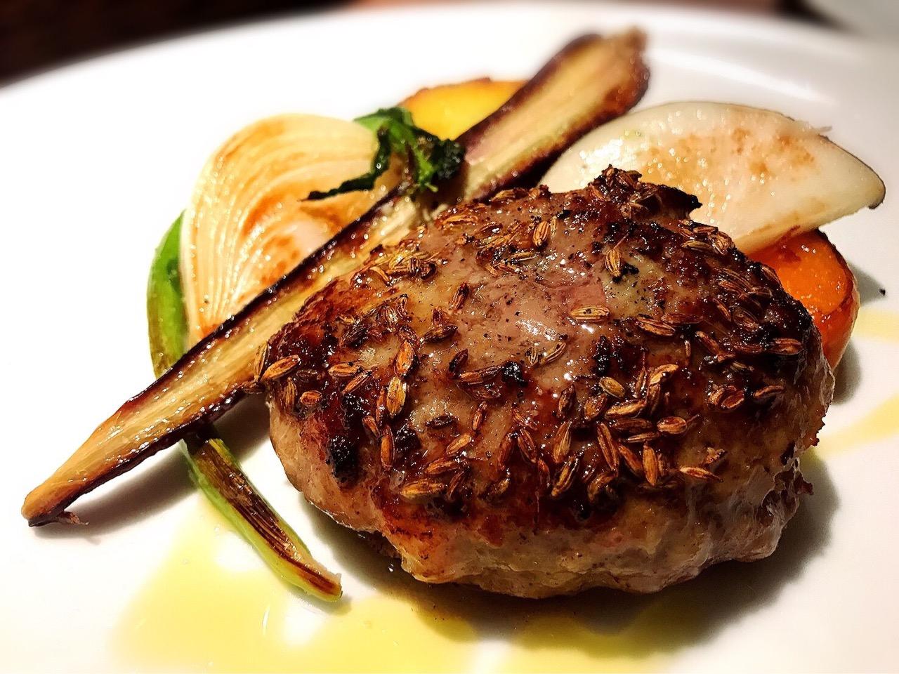 肉汁したたりまくるラムバーグは、食感、香りとも最高のバランス!