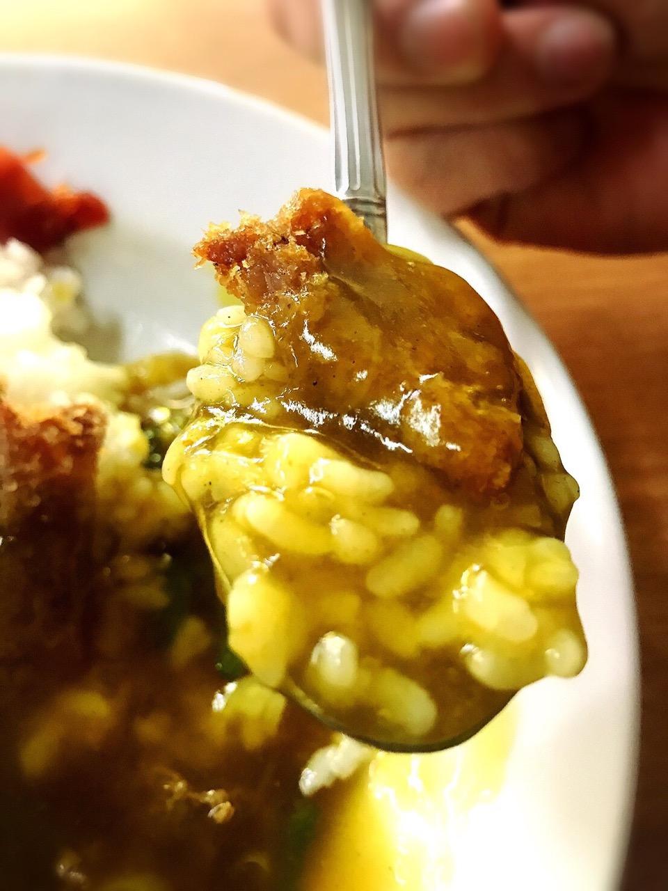カレーうどんの出汁をあんかけにしてライスにかけ、カツを乗せたという、構造的にはカツカレーに近い食べ物だよ!