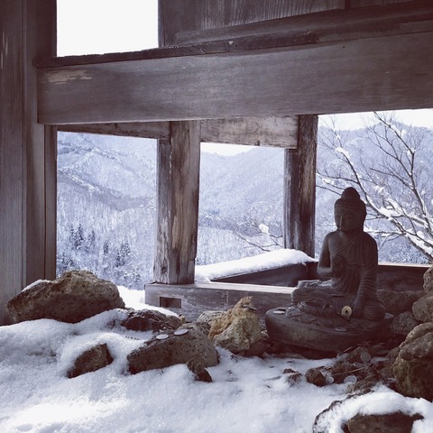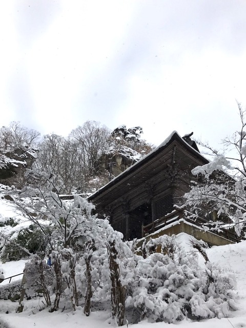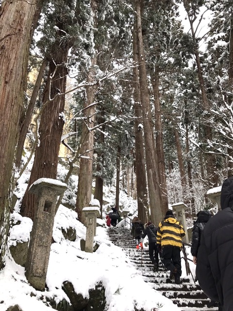 雪深い上に、朝は石段が凍って滑りまくるので、簡易アイゼンを履いてズンズン登るよ!