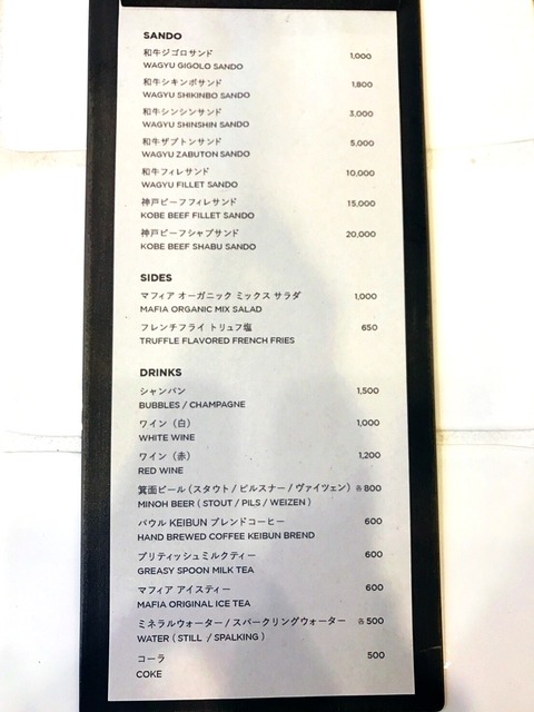 1000円台のものから、神戸牛のシャトーブリアンを使った20000円のサンドイッチまで、変態的なラインナップがズラリ!