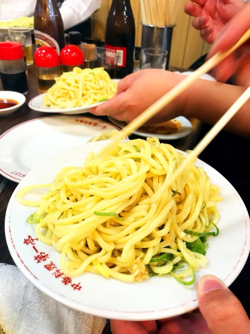 モチモチした太い中華麺に醤油とごま油、そしてニンニクとネギを和えただけというシンプルな和え麺だよ!
