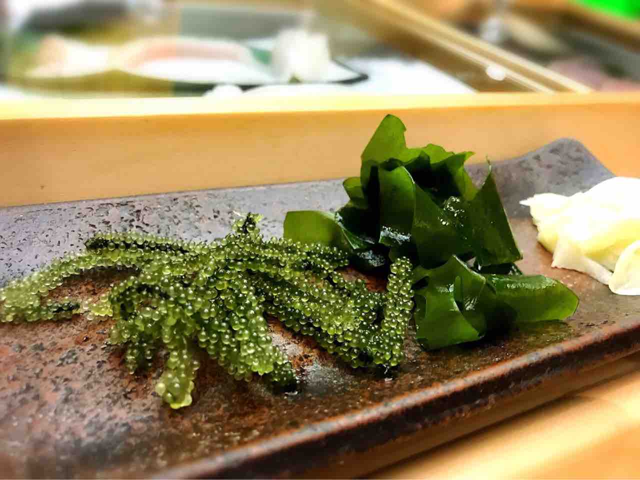 まずはすし匠系列の名刺がわりとも言える、海ぶどうから!