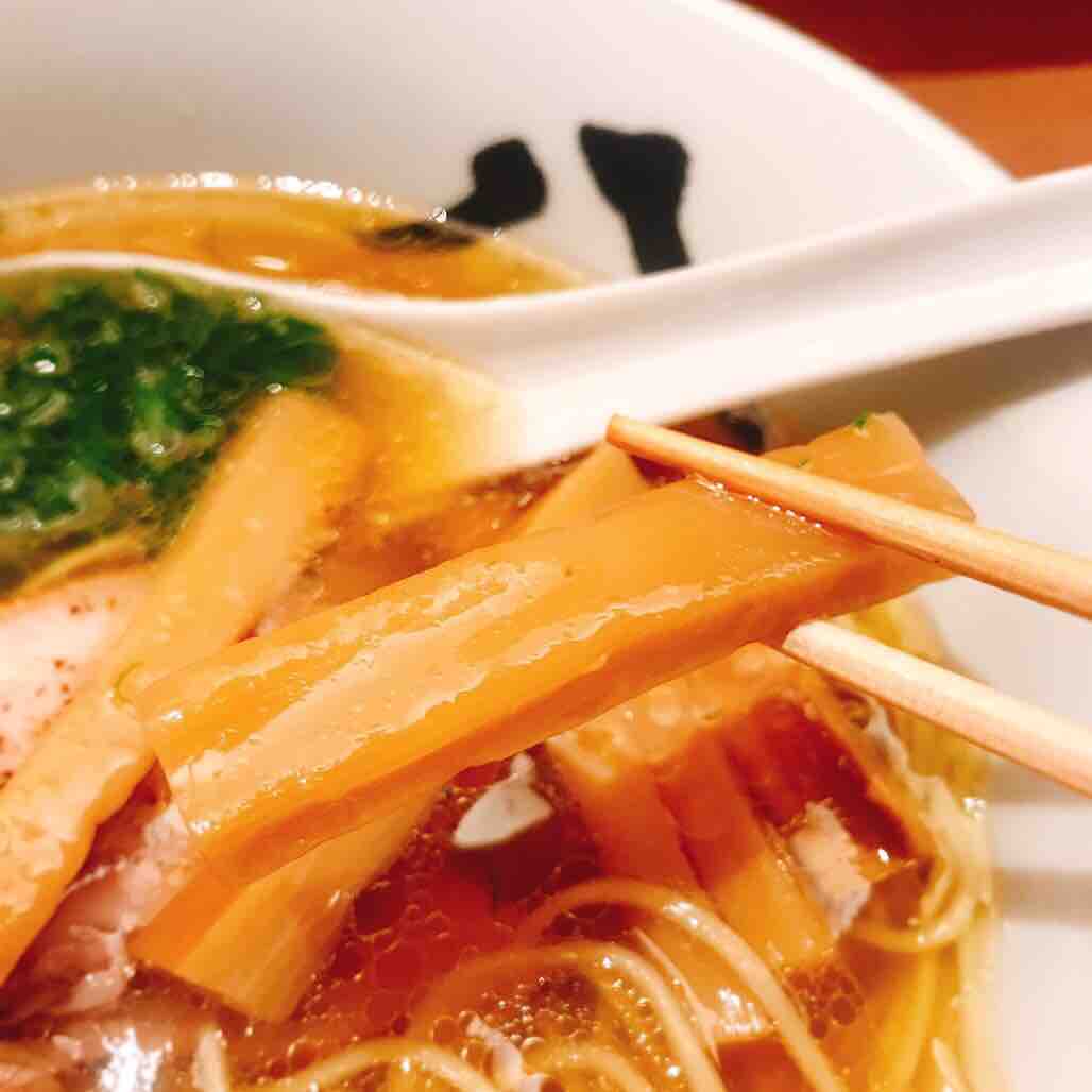 鴨ガラにドライトマト、干し椎茸や長ネギ・生姜などの香味野菜を使い、フレンチ出身の店主の強みを活かしたフレンチ技法由来のスープが醤油を使わずこの色合いを実現し、食べたことのない洗練されたラーメンを作り出しているんだって!!