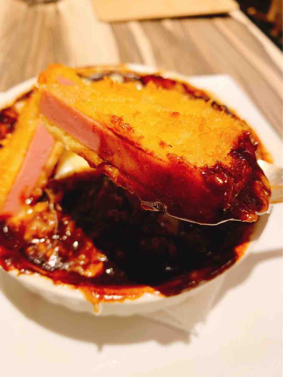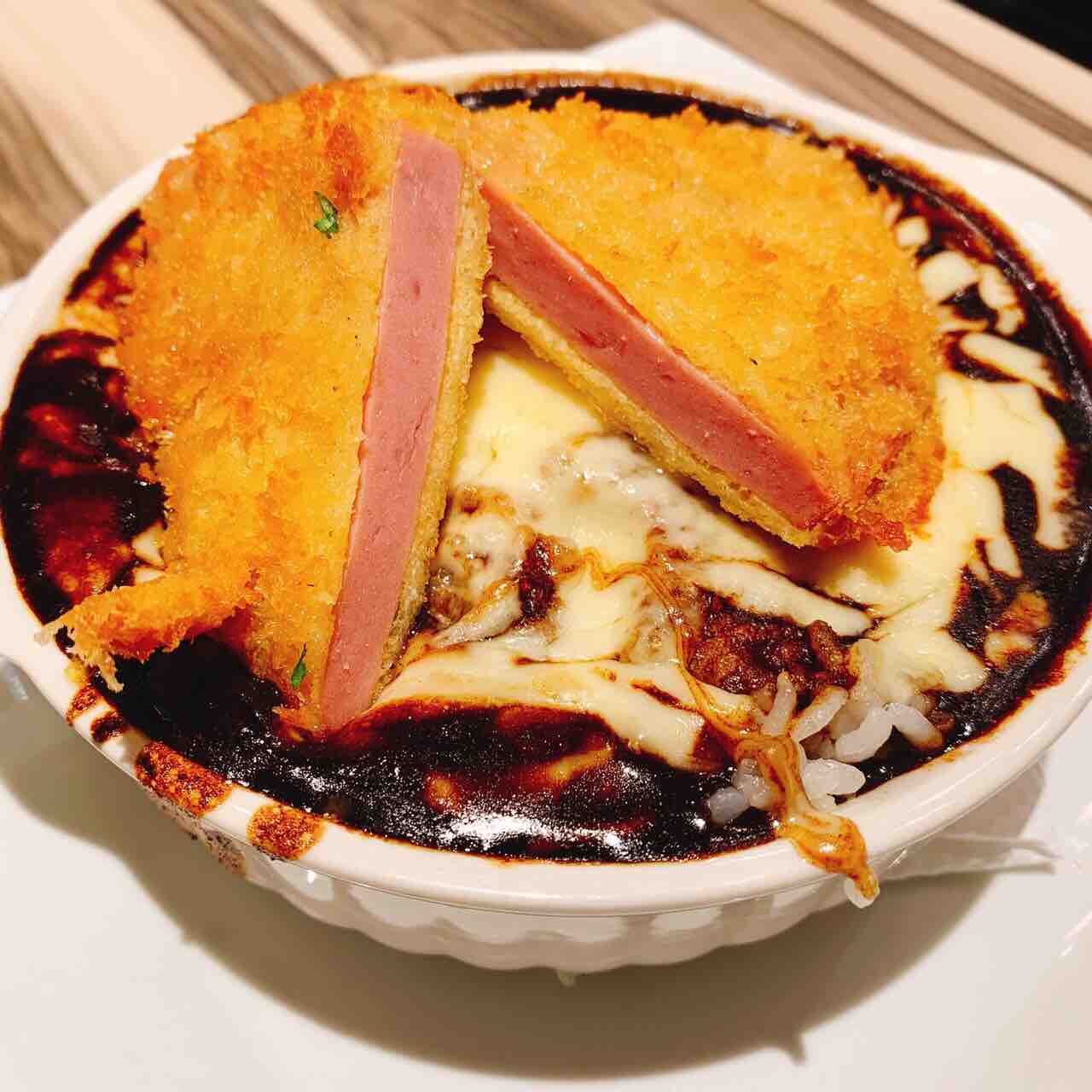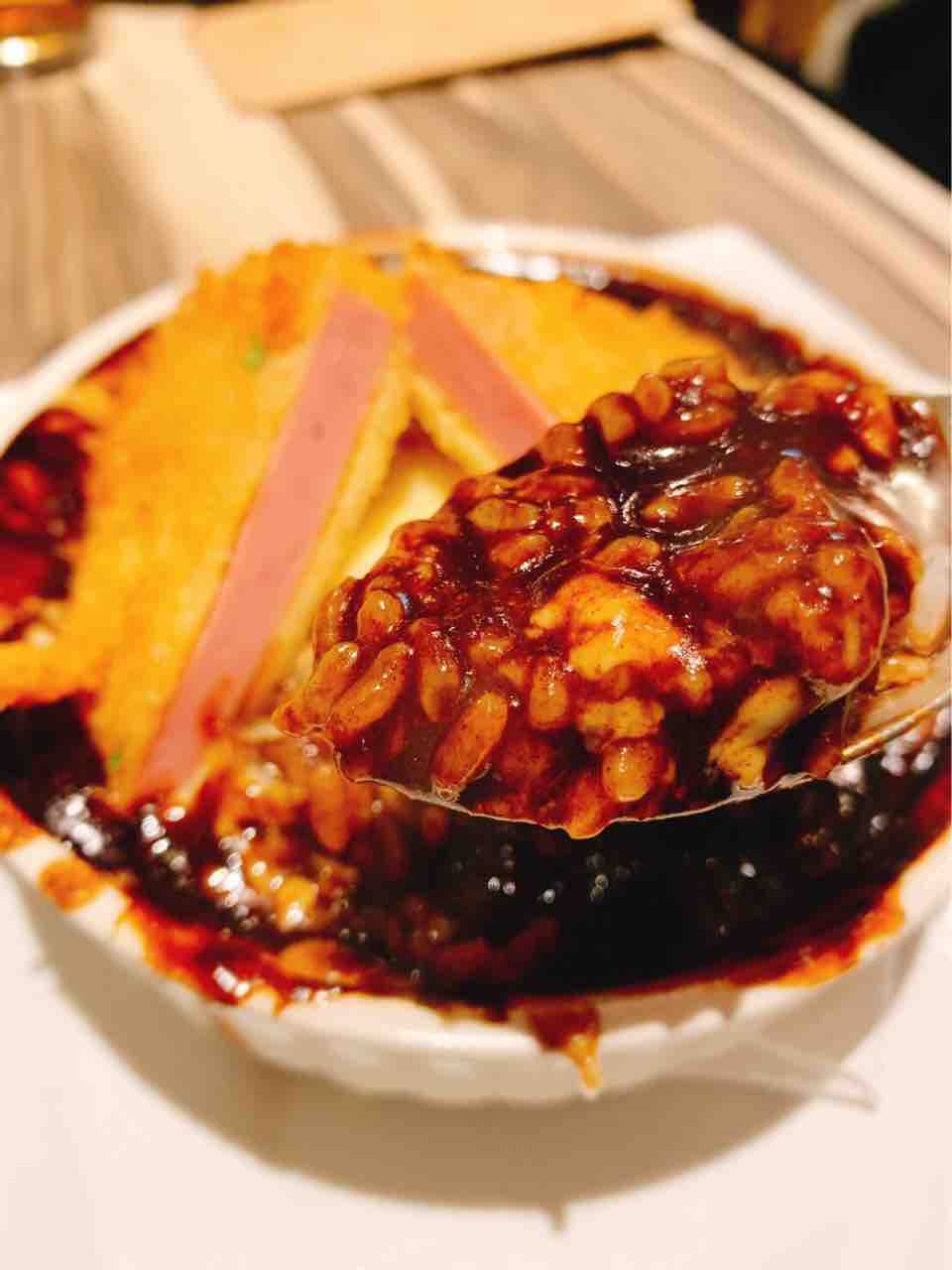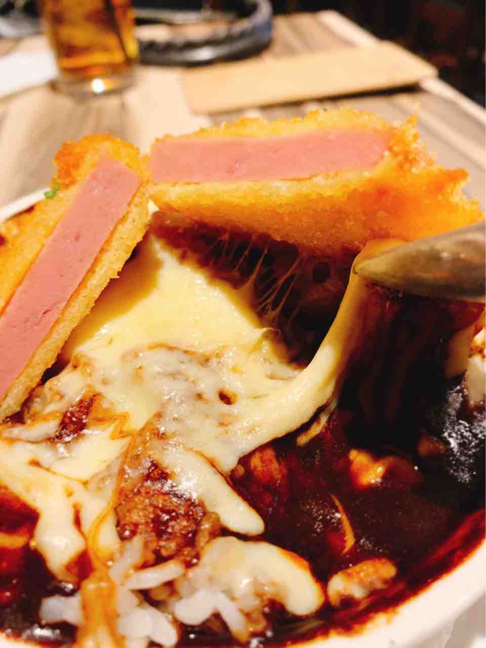 東京ブラックを標榜する漆黒のカレーにトロリと溶け出したチーズ、そして肉厚すぎるモルタデッラのハムカツのピンクと黄金のコントラストがやんばい!!