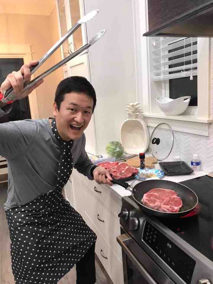 お気に入りのタイ&エプロンを身につけて、今日もUSアンガス牛を焼きまくる!!!