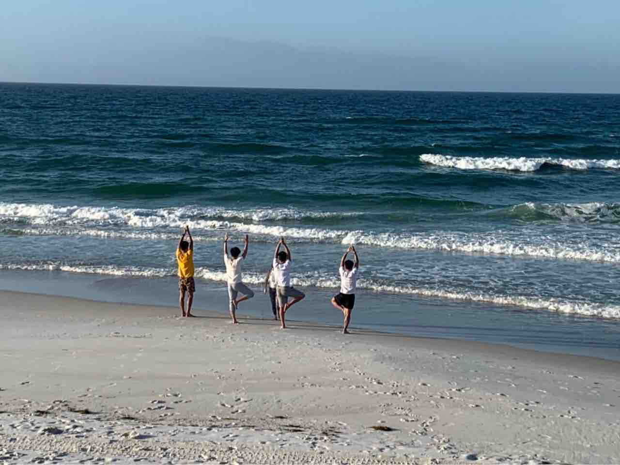 最後に海に向かってバランスポーズで集中力を整えて、朝ヨガ終了!