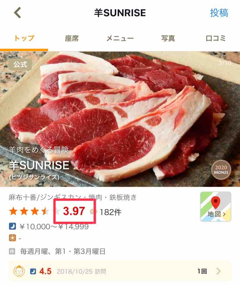 ジンギスカンとしてはぶっちぎり、驚異の食べログ3.97点!!!