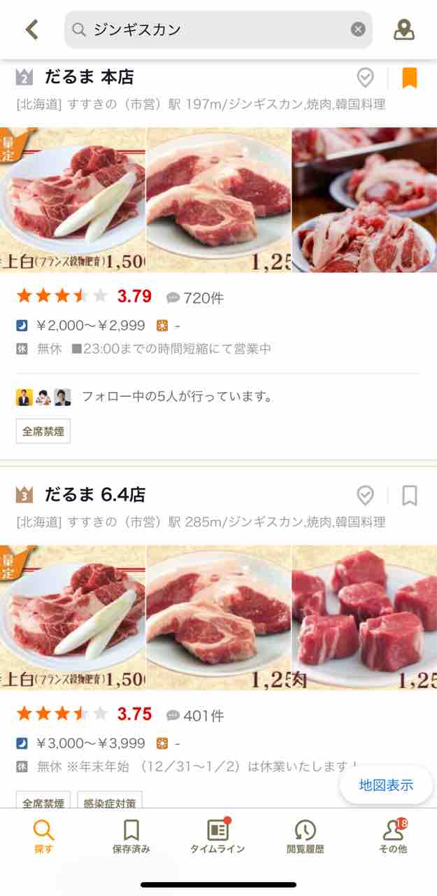 ちなみに2位、3位がジンギスカンの本場札幌の超老舗「だるま」で、点数的に大きく水を開けているというのはとんでもないことだよ!