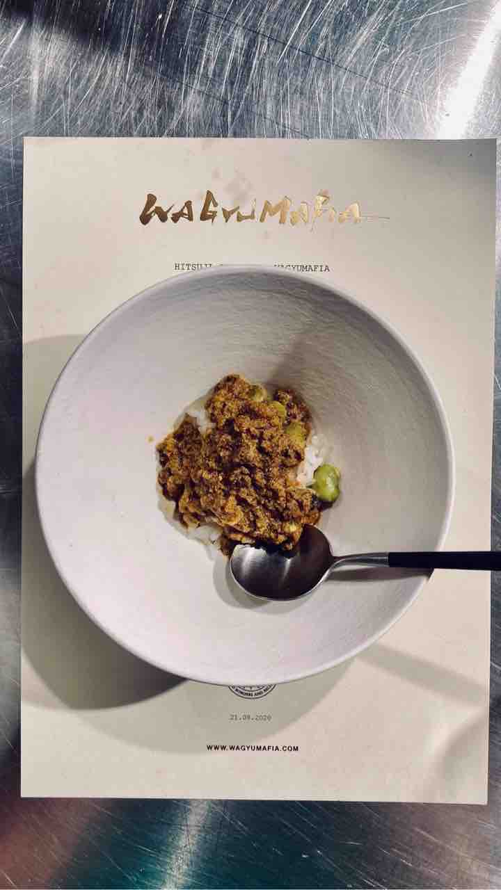 締めのごはんとしてカレーマンスペシャルラムカレーをお出しするよ!!!(写真は羊サンライズ×WAGYUMAFIAのコラボイベント時にカレーマンがつくった羊牛カレー)え。要らない?